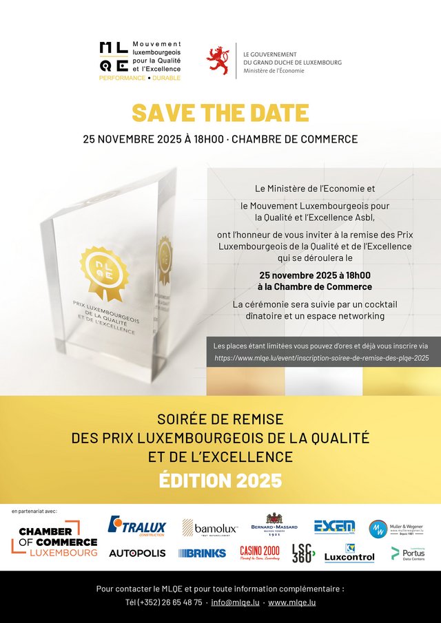 Dienstag 25 Nov 2025 Konferenz / Seminar Cérémonie de remise des Prix Luxembourgeois de la Qualité et de l’Excellence – Edition 2025 Französisch Chambre de Commerce Weiterlesen