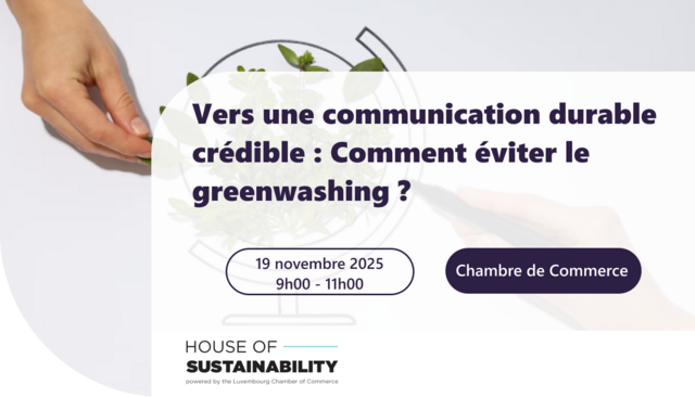 Mittwoch 26 Nov 2025 Workshop Groupe de travail - Vers une communication durable crédible : Comment éviter le greenwashing ? Französisch Chambre de Commerce, 7 rue Alcide de Gasperi, Luxembourg Weiterlesen