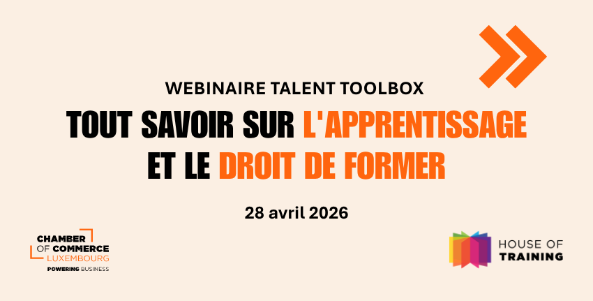 La Chambre de Commerce a le plaisir de vous inviter le mardi 28 avril 2026 à une séance d'information entreprises consacrée à l'apprentissage et au droit de former.