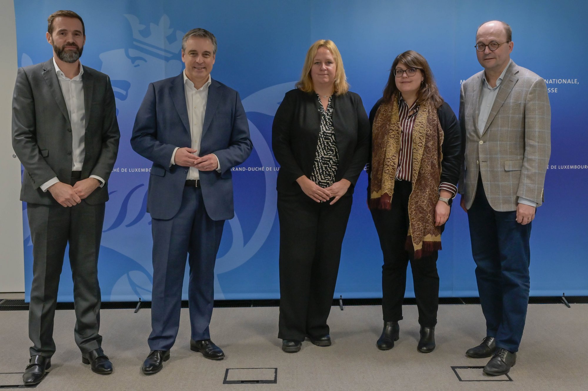 (de g. à d.) Claude Cardoso, directeur adjoint de la Chambre des salariés ; Claude Meisch, ministre de l’Éducation nationale, de l’Enfance et de la Jeunesse ; Tania Weber, chargée de formation professionnelle, Chambre d’agriculture ; Françoise Droulans, I-VET Coordinator, Talents & Skills, Chambre de Commerce ; Tom Wirion, directeur général de la Chambre des Métiers ©MENJE