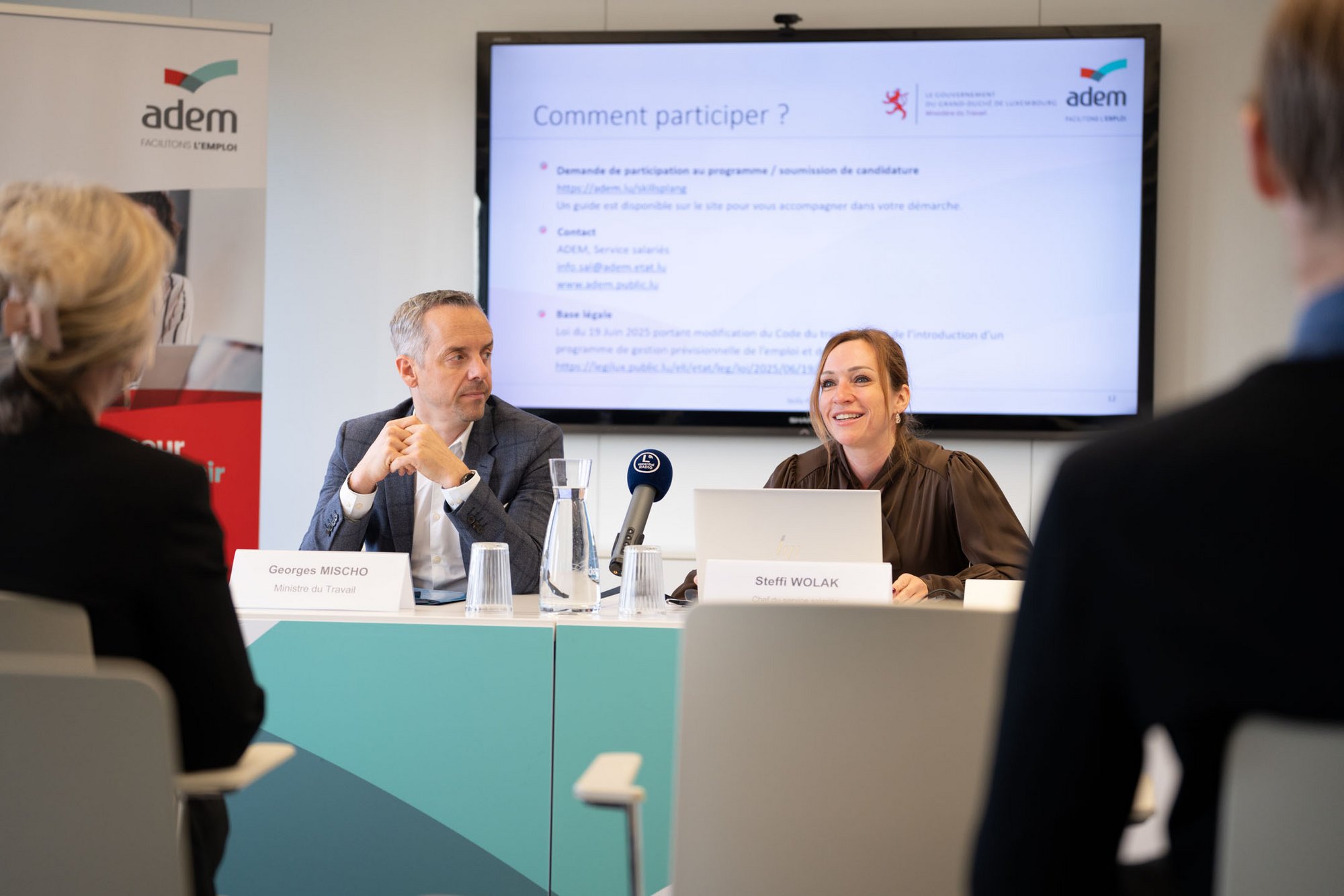 Tout est en place pour déployer le Skills-Plang dans les entreprises, le nouvel outil destiné à accompagner les employeurs et les salariés dans les transformations rapides du monde du travail et ainsi prévenir le chômage ! Lors d’une conférence de presse au siège de l’Agence pour le développement de l’emploi (ADEM), en charge de la coordination du programme, le ministre du Travail Georges Mischo a donné le coup d’envoi de cette nouvelle mesure, au niveau national, dédiée à la gestion prévisionnelle de l’emploi et des compétences. « Le Skills-Plang est le premier dispositif de l’ADEM dédié aux salariés en activité. Il traduit la volonté du gouvernement de soutenir activement les entreprises dans les défis auxquelles elles font face pour maintenir leur compétitivité, tout en sécurisant les parcours professionnels de leurs salariés. Anticiper, former et accompagner : voici les clés d’un marché du travail durablement compétitif », a salué le ministre.