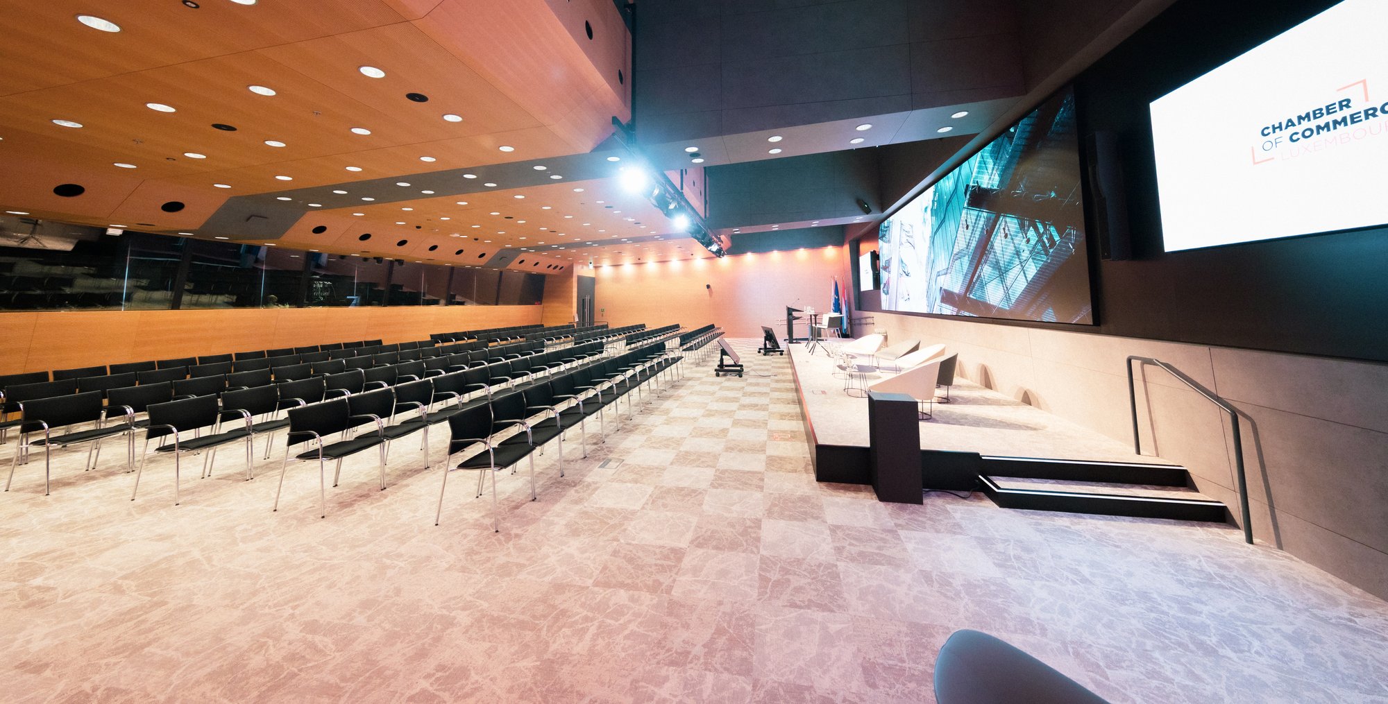 Situées en plein cœur du quartier du Kirchberg, les 3 salles du Centre de Conférences et les 30 salles du Centre de Formation de la Chambre de Commerce offrent, sur plus de 6.500 m2, un cadre exceptionnel pour des conférences, formations, réunions de travail et réceptions. Facilement accessibles par voiture (parking souterrain) et transport public, le Centre de Conférences et le Centre de Formation se trouvent à proximité du centre-ville, de l’aéroport, des hôtels et des grands axes autoroutiers.