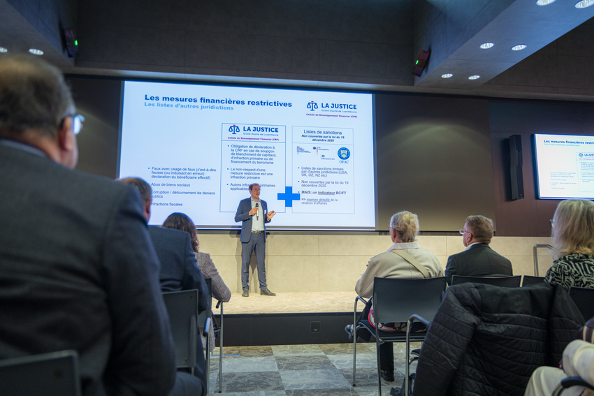 Monsieur Max BRAUN, directeur de la Cellule de renseignement financier a consacré sa présentation au sujet de l’évasion de sanctions et du financement du terrorisme.