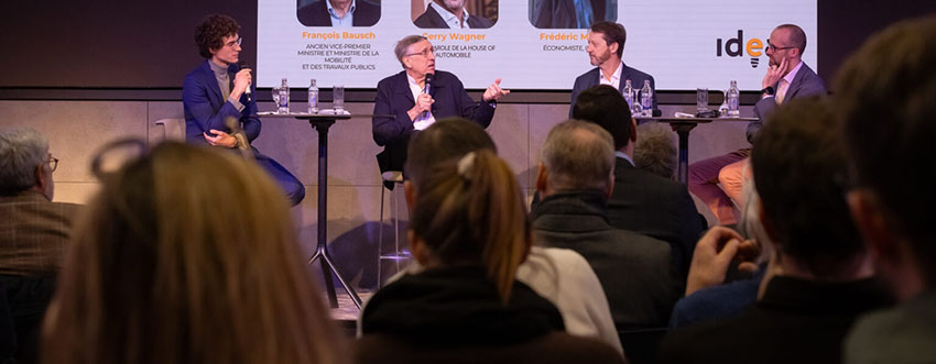 Le 28 janvier s’est tenu le premier « Débat de midi d’IDEA » consacré au thème de l’électromobilité. Devant une salle comble, Frédéric Meys, économiste, a présenté les principaux éléments de son Document de Travail N°34 avant de participer à une table ronde sur le sujet, au côté de François Bausch et Gerry Wagner.