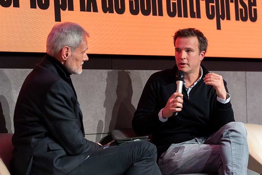 Nathalie Brognaux, experte en transmission & stratégie d’entreprise / Guy Keckhut, modérateur © Emmanuel Claude / Focalize