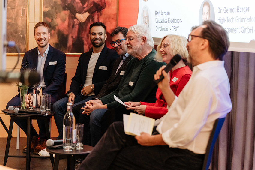 Die anschließende Paneldiskussion, moderiert von Tobias Verlende (CorpPearls), brachte renommierte Akteure zusammen, die zentrale Aspekte der Quantentechnologien abdeckten – von wissenschaftlichen Grundlagen über politische Rahmenbedingungen bis hin zu industriellen Anwendungen in Großunternehmen. Zu den Teilnehmenden zählten: