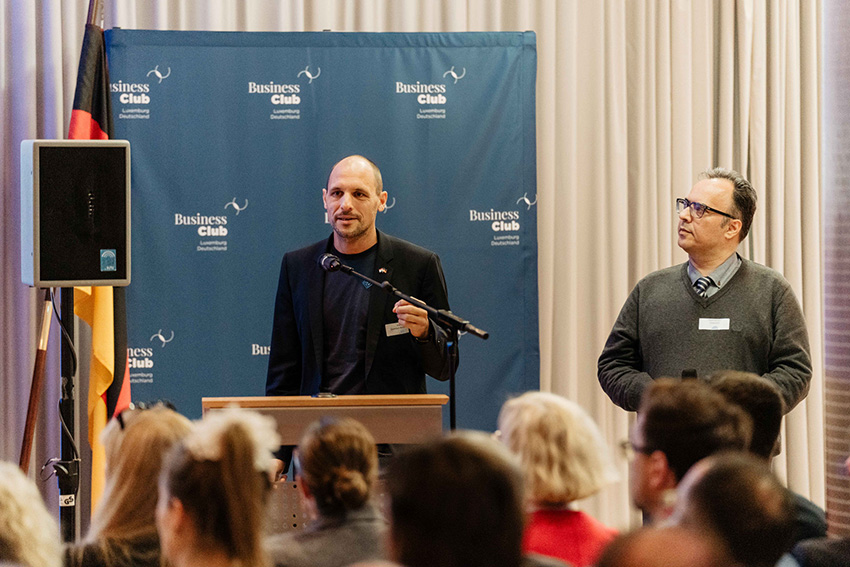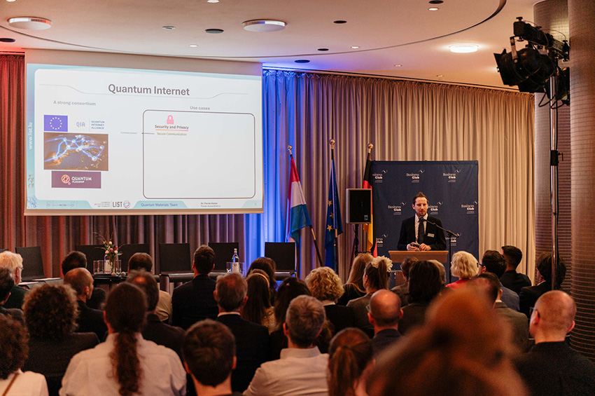 Nach der Begrüßung durch Ihre Exzellenz Botschafterin Sylvie Lucas eröffnete Florian Kaiser vom Luxembourg Institute of Science and Technology (LIST) die Veranstaltung mit einem anschaulichen Impulsvortrag. Darin zeigte er, dass Quantentechnologien längst Realität sind und dass Luxemburg in diesem Zukunftsfeld eine gestaltende Rolle einnimmt. Im Anschluss präsentierten Mark Tehrani (CyberSeQ) und Florian Preis (Quantum Brilliance) praxisnahe Anwendungen aus ihren Startups, darunter der Einsatz von Quantenmethoden zur Anomalieerkennung im Bereich Cybersicherheit.
